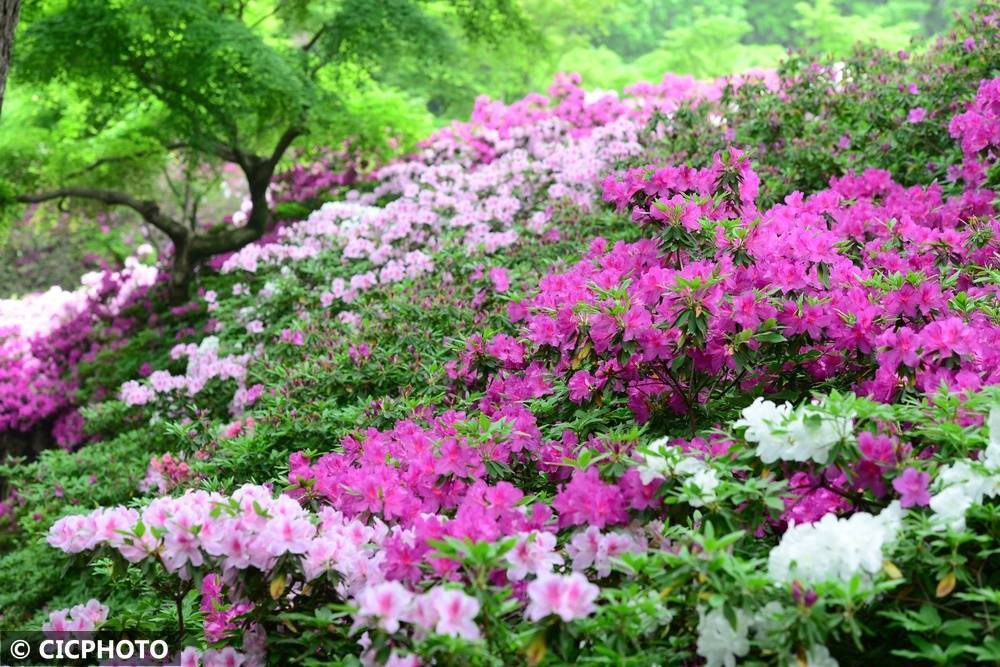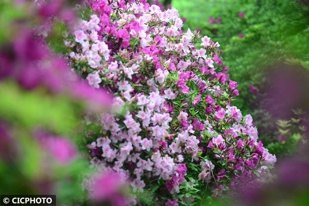 ↑2026年4月15日在江苏省无锡市惠山古镇中国杜鹃园拍摄的杜鹃花。CICPHOTO/张则鸣 摄编辑:张雪萌
